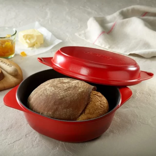 - LAVA Lijevanoželjezna posuda za kruh, 24×27 cm – crvena