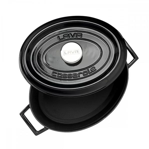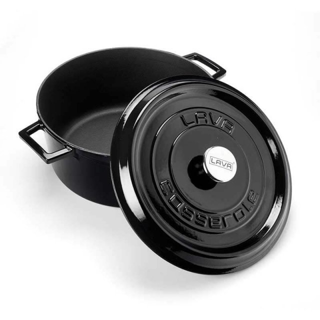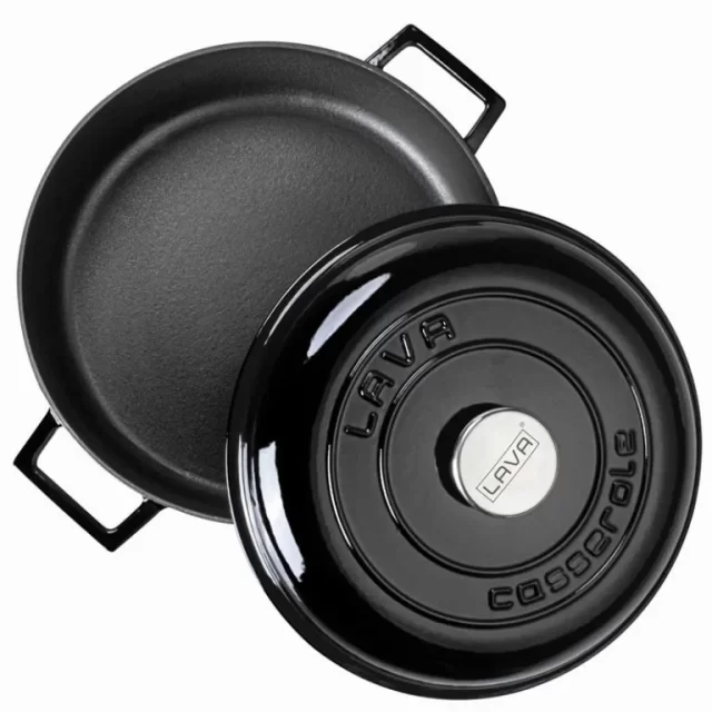 - LAVA Lijevanoželjezni lonac, 28 cm – crni, nizak, visoki poklopac