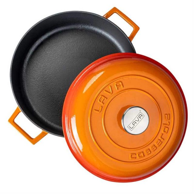 Narančasta emajlirana posuda od lijevanog željeza Lava promjera 28 cm s poklopcem.