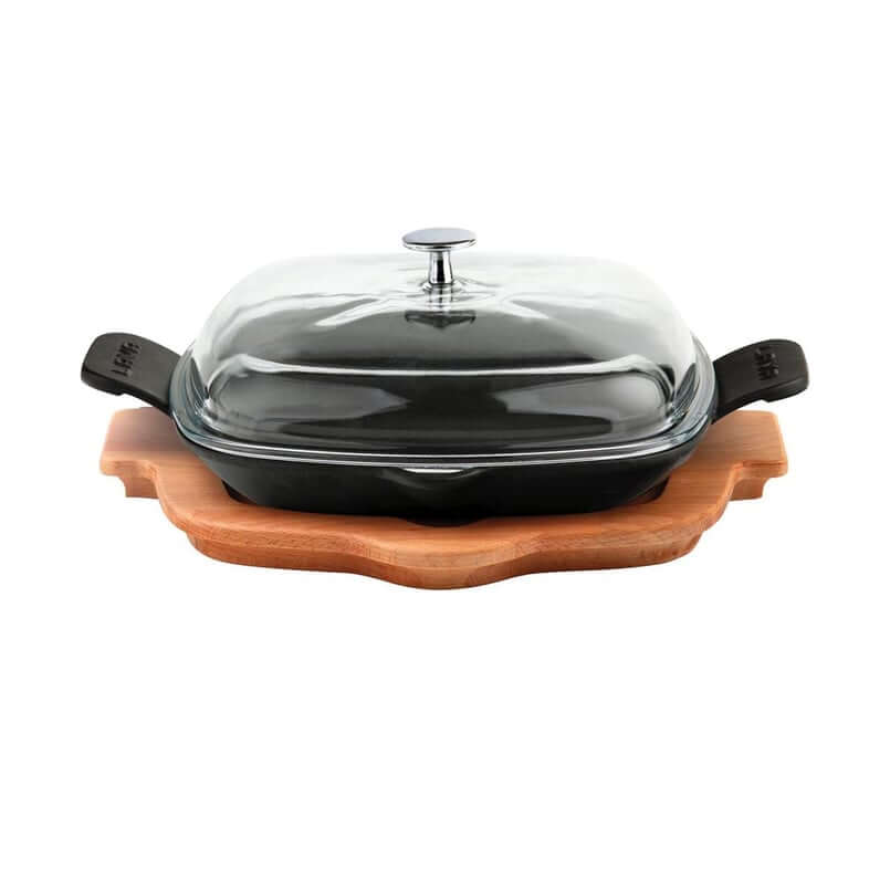 Grill tava Lava sa podlogom i staklenim poklopcem dimenzija 26×26 cm. Crna boja.