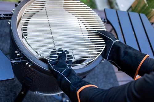 Z dvignjeno rešetko omogočimo dvonivojsko pečenje v žaru. Dvignjena rešetka iz nerjavečega jekla omogoča dodatno površino na žaru, kamor odlagamo živila, ki jih ne želimo prepeči ali preprosto odložimo, kjer čakajo, da se skupaj postrežejo z ostalo hrano.